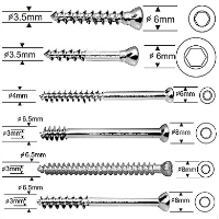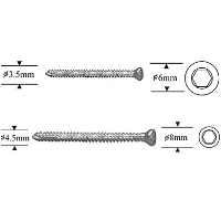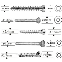 Cortex Screw 2.0mm, Hexagonal Socket Thread Dia. 2.0 mm Drill Bit for Threaded Hole 1.5 mm Drill Bit for Glinding Hole 2.0 mm Core Dia. 1.3 mm (Tit. 1.4 mm) Hexagonal Socket Width 1.5 mm Head Dia. 3.5 mm