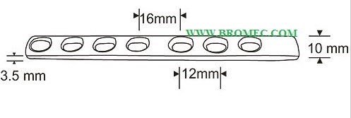 Dynamic Self Compression Plate for Small Fragment for Ulna and Radius. Profile : Thickness 3.5 mm Width 10 mm Hole spacing 12 and 16 mm